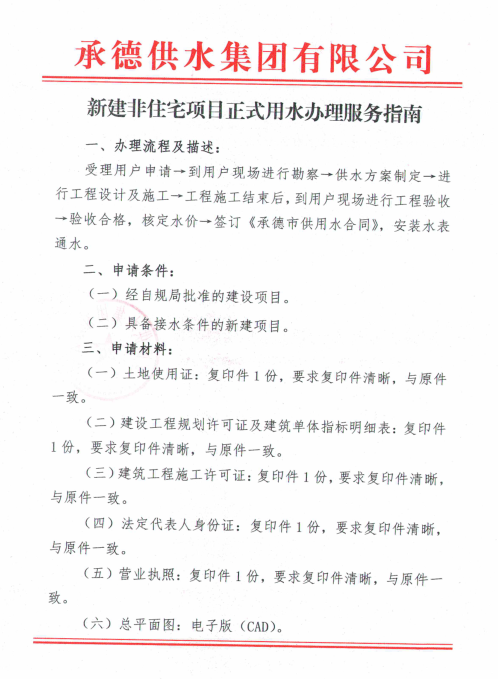 新建非住宅項(xiàng)目正式用水辦理服務(wù)指南